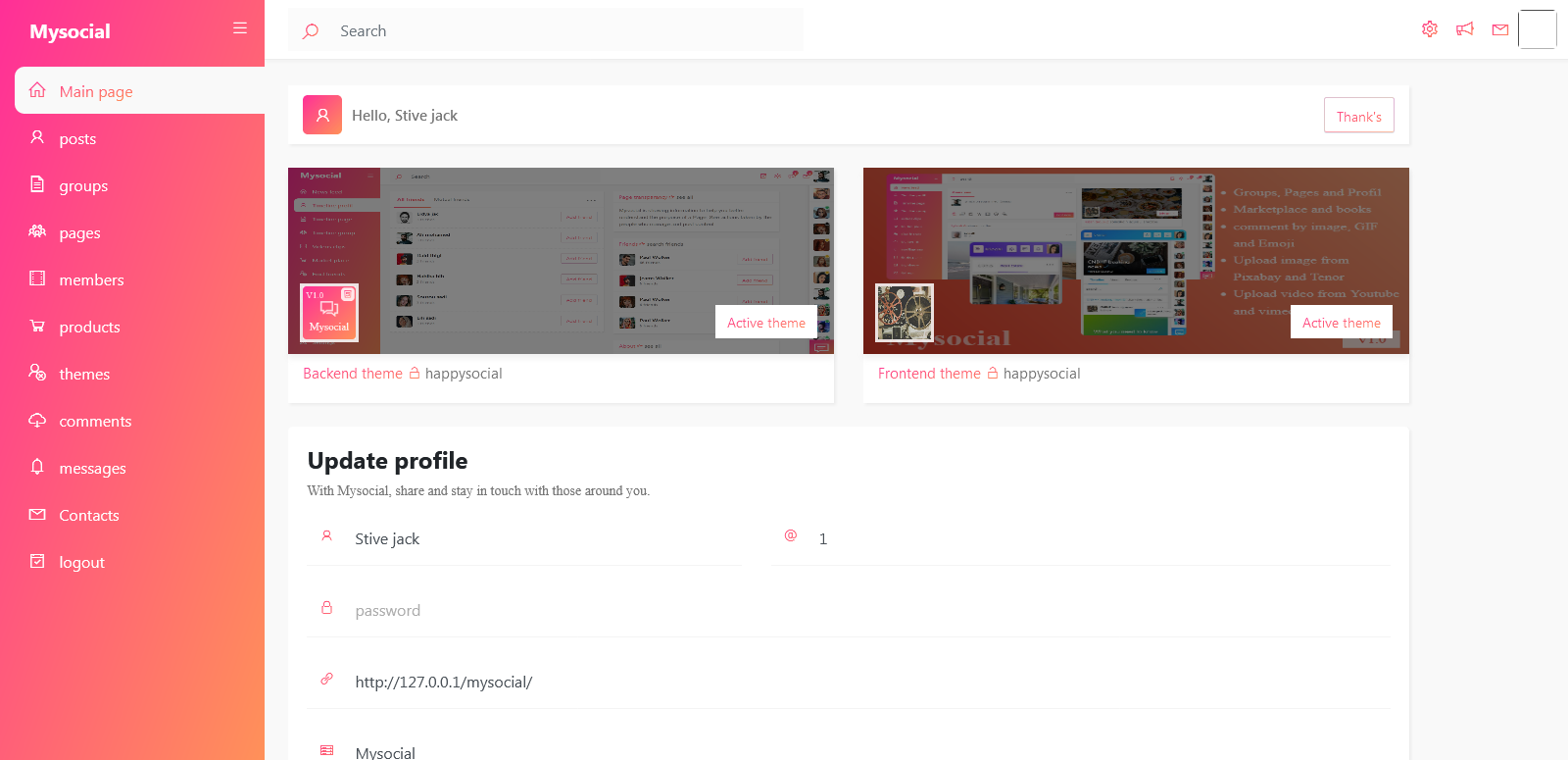 Admindashbord, Email admin@socialnetworkphp.com and password : 123456