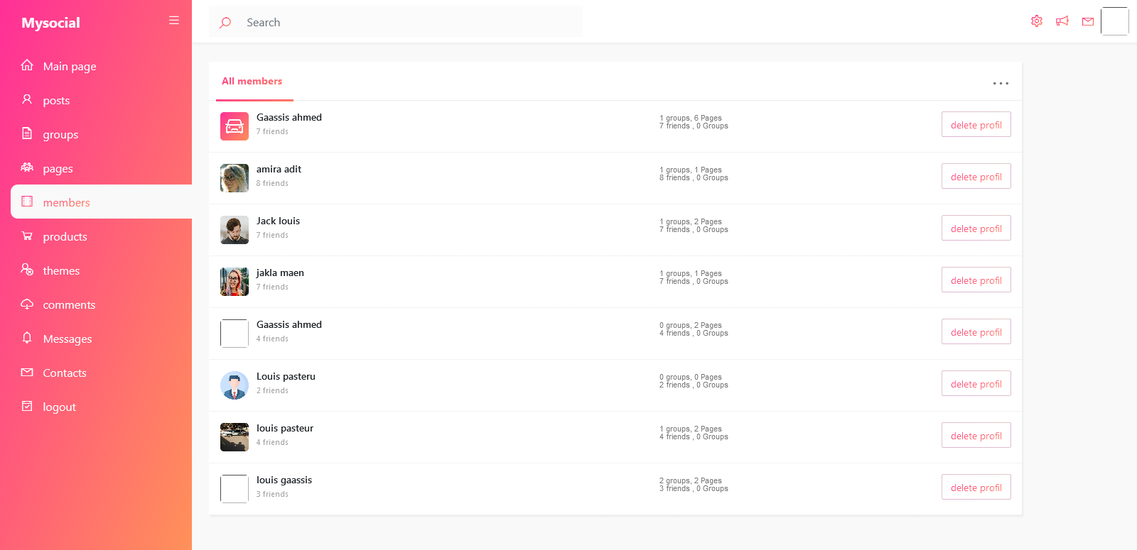- The user can create unlimited pages and add his friends to his joined pages. pages can be classed by category