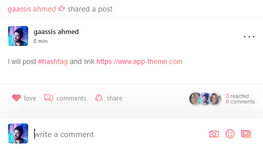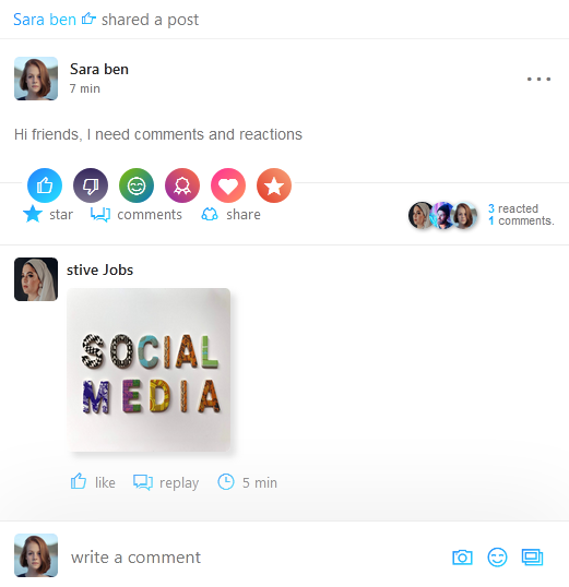 - User can comment by images, emoji, Gif Image from "tenor.com" and text