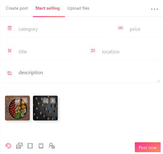 - The publisher can sell on the marketplace by adding a post from "start selling".